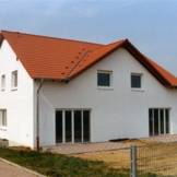 Doppelhaus mit Gaube und Garage, offene Bauweise.